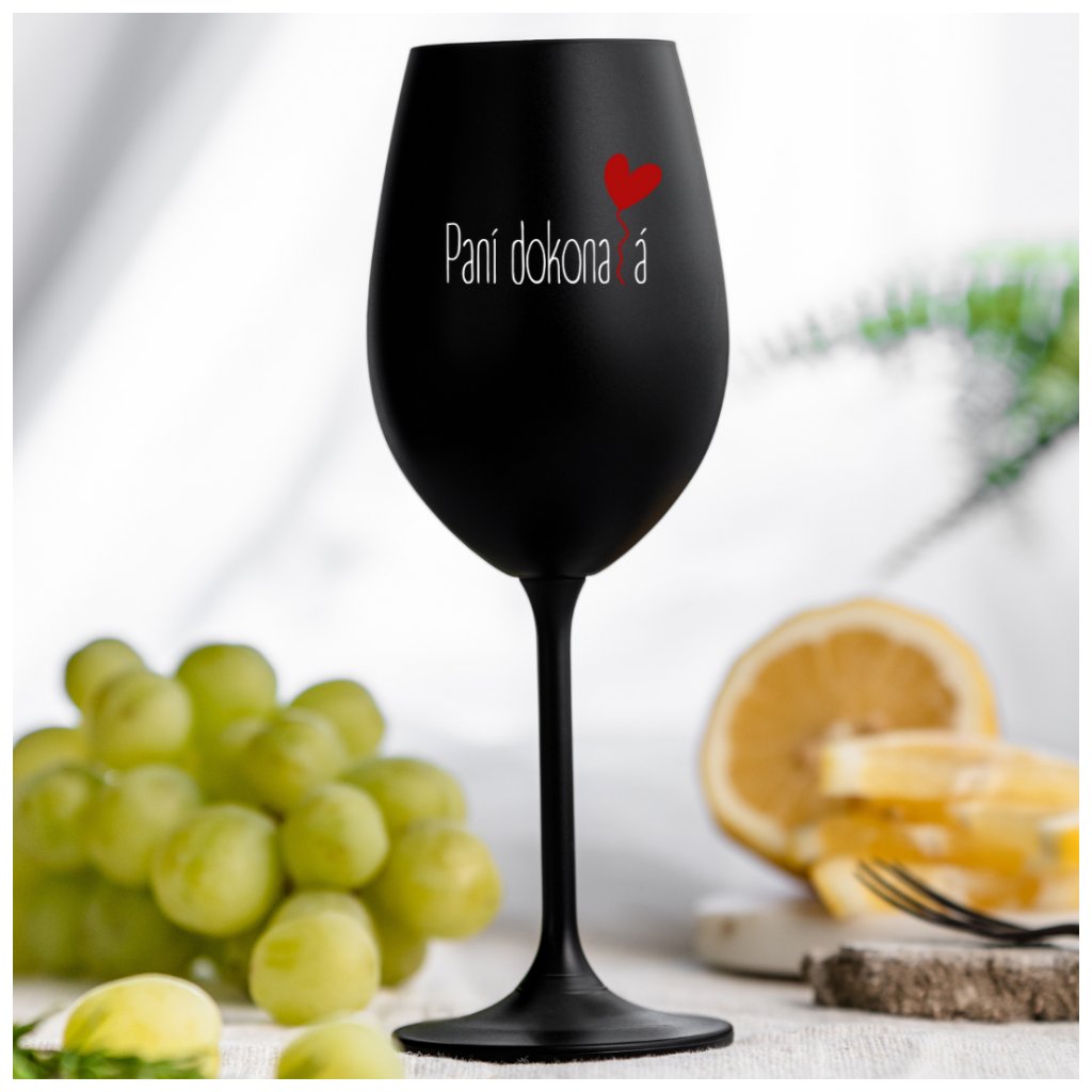 Černá sklenička na víno 350ml - PANÍ DOKONALÁ