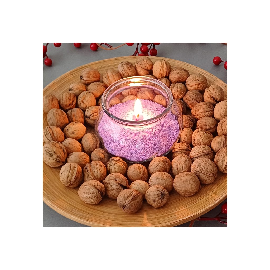 Sypká svíčka OVOCNÉ TAJEMSTVÍ s vůní švestek, višní a broskví, zjemněná teplými tóny vanilky a karamelu. Dokonalá pro chladné dny - sladká a hřejivá.