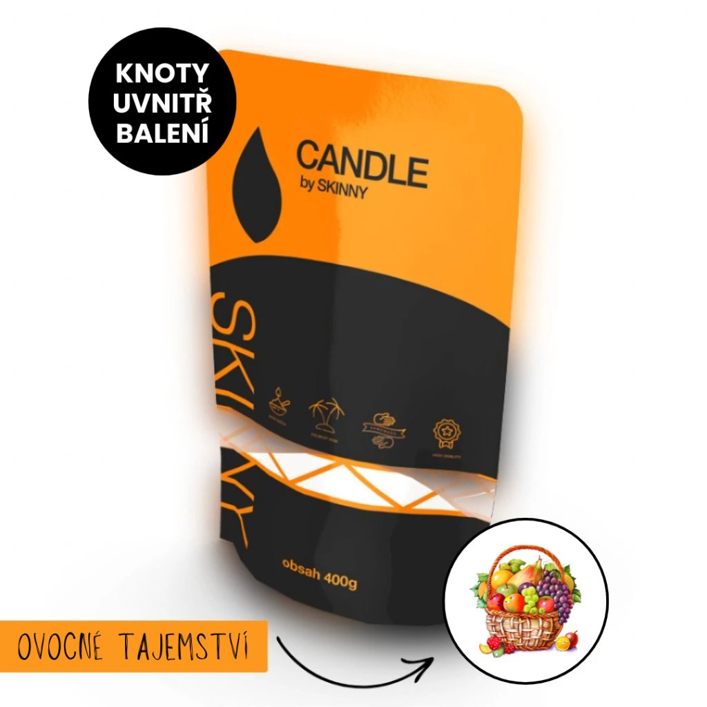 Sypká SVÍČKA 400g - OVOCNÉ TAJEMSTVÍ. Obsahuje sadu knotů uvnitř balení.