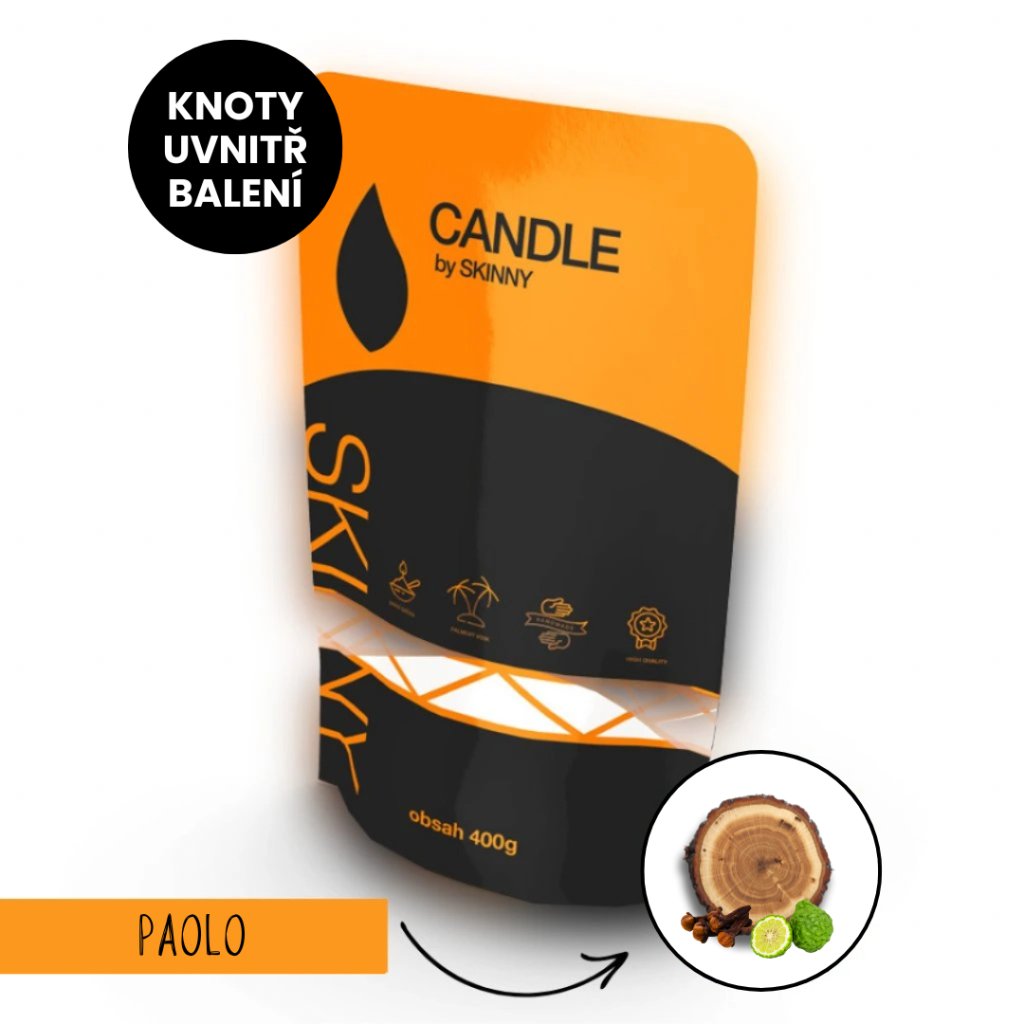 Sypká SVÍČKA 400g - PAOLO. Obsahuje sadu knotů uvnitř balení.