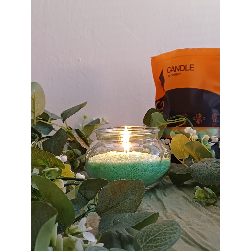 Nasypte Vaši sypkou směs CANDLE by SKINNY do své oblíbené nádoby. Doporučujeme ohnivzdorné, ale je jen na Vás a Vaší fantazii, jakou nádobu zvolíte. Musíte se jen ujistit, že mají dostatečnou velikost, aby udržely roztavený vosk od okraje a zabránily zahřívání nádoby během používání. Znamená to tedy použít nádobu s minimální šířkou a výškou 8cm. Pečlivě ji vyzkoušejte a zjistěte se, že se při hoření nezahřívá.